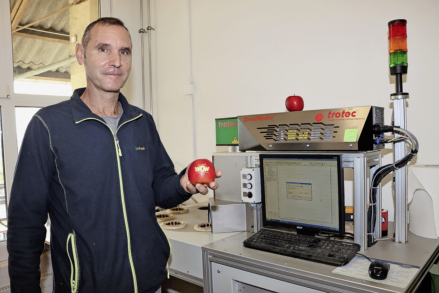 Die lasergravierten Früchte der Rheinobst Genossenschaft sind inzwischen fast in der ganzen Schweiz bekannt. Das kleine, aber innovative Unternehmen im st.gallischen Au steht seit 75 Jahren für frisches, knackiges und vitaminreiches Obst . Es gehörte vor etwa 15 Jahren zu den ersten, welches die Laser-Technologie für die Beschriftung von Früchten eingesetzt hat. Damit gelang es der Rheinobst Genossenschaft ein neues, damals noch nicht bedientes Kundensegment zu erschliessen. «Wir haben diverse Werbeagenturen in der ganzen Schweiz als Partner, die für ihre Kunden bei uns Äpfel mit ihrem Firmenlogo bestellen», freut sich Betriebsleiter Markus Hutter. Seit 18 Jahren ist er im Betrieb tätig, seit fünf Jahren als Betriebsleiter. Dieses Jahr ist das Geschäft mit den «Werbe»-Äpfeln allerdings stark eingebrochen. Auf Grund der Corona-Pandemie wurden fast keine Grossanlässe, Sportveranstaltungen und Messen mehr durchgeführt, an denen die speziellen Zwischenverpflegungen verteilt werden konnten. Was die lasergravierten Früchte betrifft, steckt Markus Hutter die Hoffnung ins Weihnachtsgeschäft. Orangen, Äpfel oder Kiwi versehen mit der passenden Werbebotschaft sind ideale Kundengeschenke.