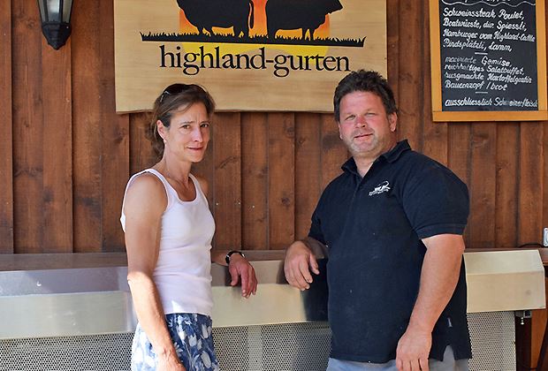 Auf den Teller kommen immer nur frische und regionale Produkte. Dazu gibt’s natürlich hofeigenes Highland-Beef auf dem Grill. Die Edelstücke verkaufen die Balsigers dem Restaurant „Mille Sens“ in Bern. Damit Ruedi Balsiger das Know-How für die Küche hat, band er sich selber drei Winter lang die Kochschürze um und kochte in einem Berner Restaurant.
