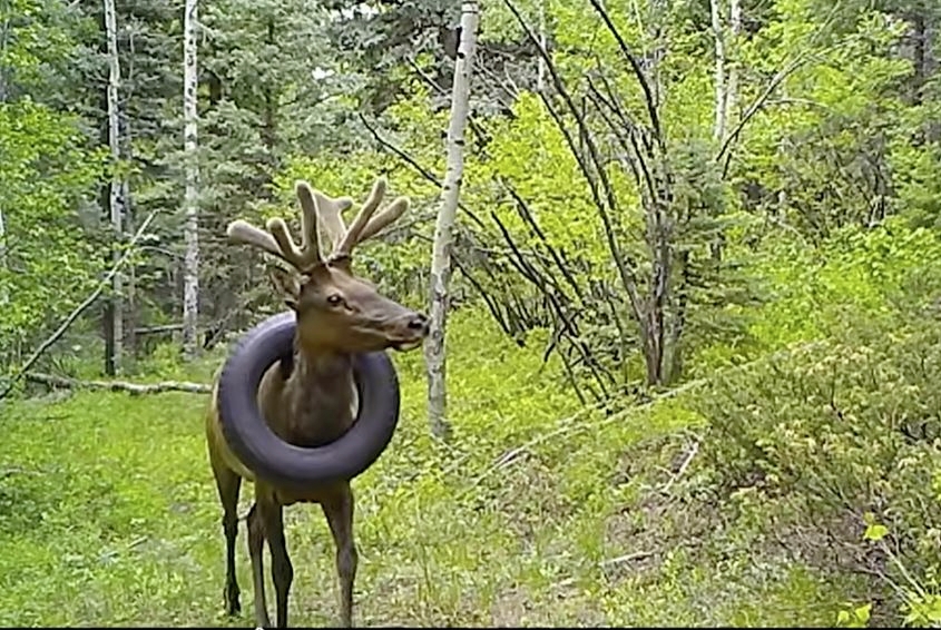 Der Junghirsch habe den Reifen entweder schon als Kalb um seinen Hals bekommen oder im Winter, als er sein Geweih abwarf, teilte Colorado Parks and Wildlife weiter mit. Es könne sein, dass das neugierige Tier seinen Kopf in einen Reifenstapel gesteckt habe.