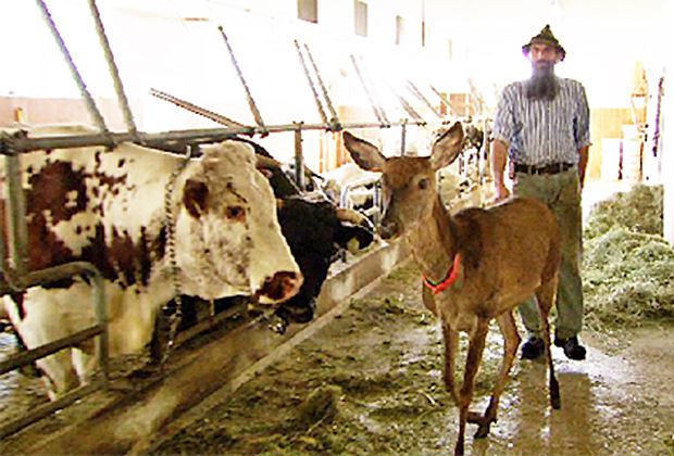 Eine aussergewöhnliche Freundschaft hat sich im österreichischen Scheffau entwickelt. Seit 14 Monaten lebt eine Hirschkuh bei der Kuhherde. «Nina» lässt sich die Kühe nicht mehr aus den Augen verteidigt diese gegenüber Spaziergängern und Hunden.