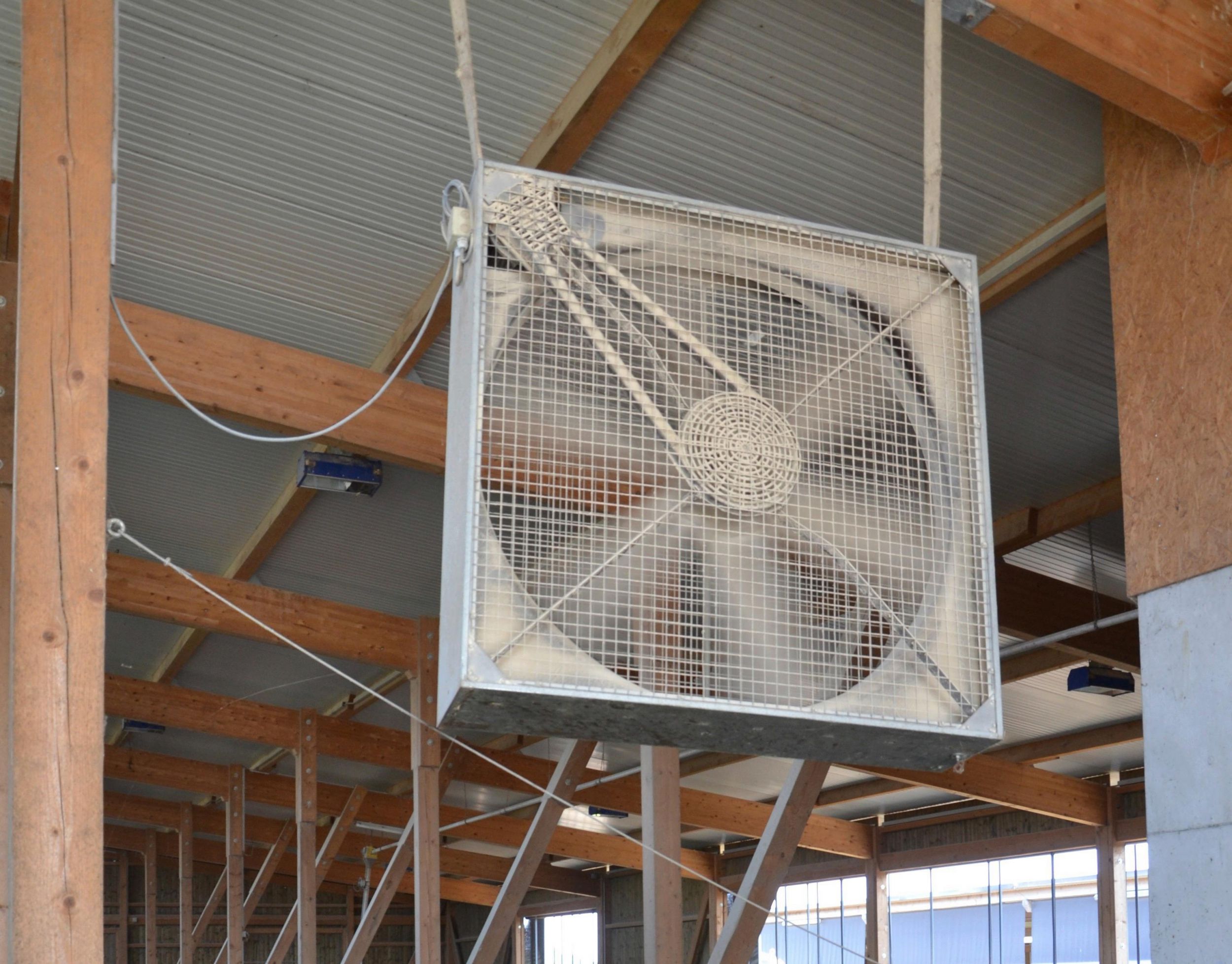 Der Einbau von Ventilatoren in Verbindung mit einem Besprühen der Kühe mit Wasser kann den Hitzestress deutlich vermindern. Schon eine Luftbewegung von nur 10 km/h könne die Atmungsrate bei hitzegestressten Kühen um 50 Prozent reduzieren, schreibt Holstein International. Besprüht man Kühe in feuchten oder schlecht belüfteten Ställen mit Wasser, kann dies die Situation verschlechtern, denn das feuchte Fell bindet die Wärme im Tier.