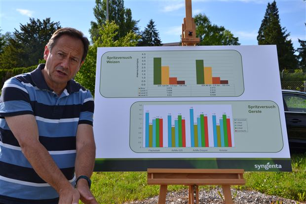 Über 100 Bauern, Lohnunternehmer und Berater nutzten am letzten Freitag die Gelegenheit, sich bei Syngenta in Dielsdorf ZH live in den Demo-Parzellen über neue Sorten und Neuheiten im Pflanzenschutz zu informieren. Wobei Ron Wohlhauser, Leiter Applikationstechnologie bei Syngenta, deutlich machte: «Wir fassen den Begriff Pflanzenschutz weiter, als einfach Wirkstoffe zu verkaufen. Wir wollen euch helfen, die Produkte optimal anzuwenden.»