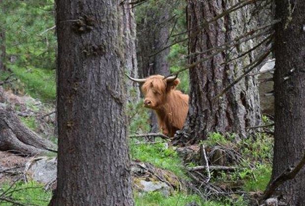 Letzten Sonntag wurde das Hochlandrind doch noch gefunden: Es tummelte sich vier Kilometer ausserhalb Pontresinas in freier Natur. Polizei und Wildhut versuchten das Tier mehrere Stunden lang erfolglos einzufangen. Doch Rind Ilana gelang es erneut zu flüchten.