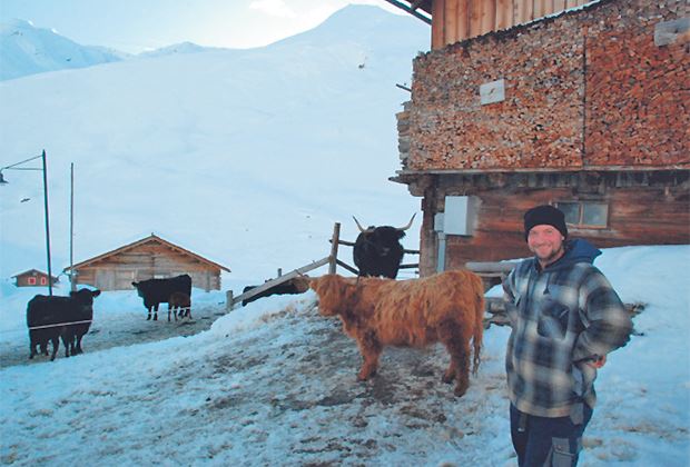 Jetzt hofft er, dass gegen Ende Mai oder Anfang Juni die Scheune aus Holz aufgerichtet werden kann. Ziel wäre es, das Heu vom nächsten Sommer bereits in die neue Scheune einzubringen – im wahrscheinlich höchstgelegenen Stall Europas. Sogar mit noch etwas Platz für ein wenig mehr als die derzeit 30 Kühe, deren Fleisch er zu etwa einem Drittel direkt an Stammkunden verkauft.