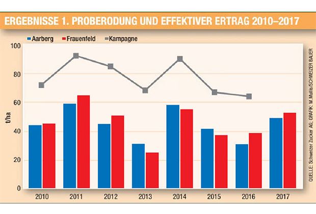 «Die berechneten Zuckererträge sind erfreulich und vergleichbar mit 2012», ordnet Imhof die Zahlen ein. «Trotz der Trockenheit entwickelten sich die Rüben gut, regionale Gewitter sorgten immer wieder für Entspannung bei der Wasserversorgung. Voraussetzung für eine gute Ernte ist nun, dass in den nächsten Wochen ausreichend Regen fällt und die Blattkrankheiten unter Kontrolle gehalten werden können.» Diesbezüglich ist Hansjörg Weber von der Fachstelle für Zuckerrübenbau optimistisch: «Viele Rüben wurden gegen Blattflecken behandelt. Wenn wir vorsichtig bleiben, ist eine Epidemie kaum zu befürchten.» Dann sei ein überdurchschnittlicher Rübenertrag wie im Jahr 2012 realistisch.