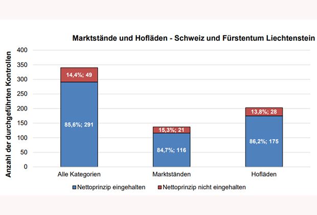 Insgesamt seien diese Ergebnisse erfreulich und besser als die Ergebnisse der Kontrollen, die im Jahr 2016 zur Einhaltung des Nettoprinzips in Geschäften wie Metzgereien, Molkereien, Käsereien sowie Confiserien und Bäckereien durchgeführt wurden, schreibt Metas im Jahresbericht. Insgesamt wurden 438 Testkäufe im Jahr 2016 getätigt, wobei in 21,7% der Fälle das Nettoprinzip damals nicht eingehalten wurde.