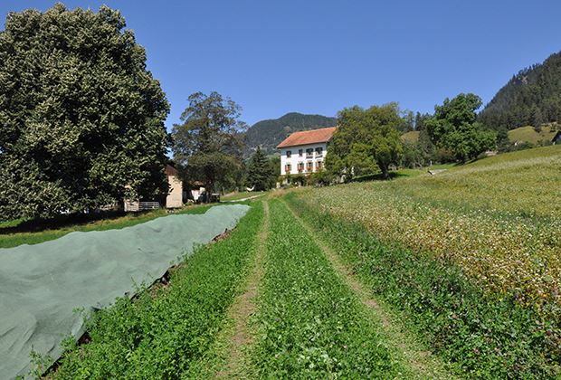 Auf rund 10 der 30 Hektaren wird Bergackerbau betrieben. Dort bauen sie alte Getreidesorten, Linsen, Raps und Hirse an. Das wichtigste Standbein ist die Direktvermarktung von Rindfleisch aus der Mutterkuhhaltung. Bluniers, die ihren Betrieb nach den Bio-Suisse- und Demeter-Richtlinien bewirtschaften, haben sich für Grauvieh entschieden. «Diese Tiere sind an die regionalen Gegebenheiten angepasst. Zudem möchten wir mit der Zucht auch zur Erhaltung der Rasse beitragen», sagt Georg Blunier.