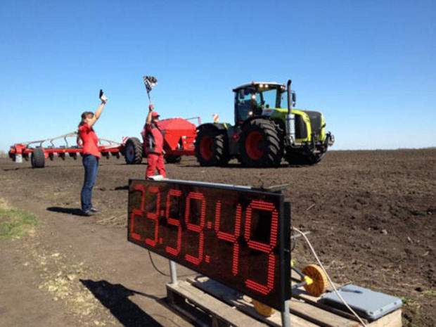 In 24-Stunden wollen die beiden Landtechnik-Hersteller Horsch und Claas möglichst viele Hektaren Mais säen. Der Weltrekordversuch wurde heute Freitag 10 Uhr gestartet.
