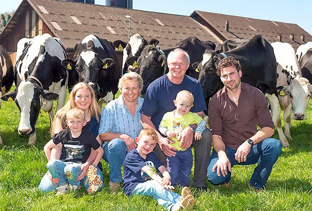 Alfred Rüsslis Herde ist sehr gross und zählt nicht weniger als 270 Tiere. 150 Kühe werden täglich gemolken. Trudi, Alfreds Ehefrau, kümmert sich darum: «Ich widme täglich rund sechs Stunden dem Melken – drei am Vormittag, drei am Abend. Ich beginne gegen 3 Uhr morgens und dann wieder um 14 Uhr.»