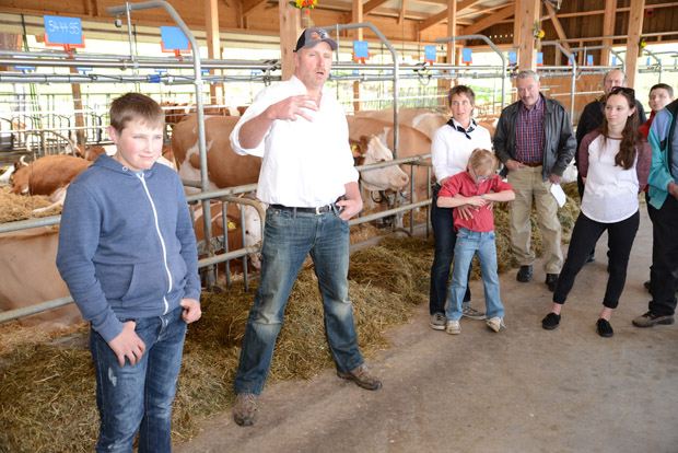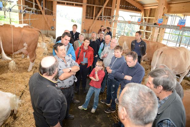 Direkt am lebenden Tier versuchten die Mitglieder der IG, den Vertretern des Bundes die Vorzüge dieses Aufstallungssystems näherzubringen. «Schauen Sie diesen Viehbestand an. Da sehen sie nie ein Klauenleiden», meinte Scheuner zu den Anwesenden. Er kritisierte weiter die Aussage von Beat Wechsler vom BLV in einem Zeitungsartikel, wonach das soziale Verhalten der Kühe im Anbindestall eingeschränkt sei: «Das zeigt die komplette Unkenntnis von Theoretikern, die so etwas schreiben.»
