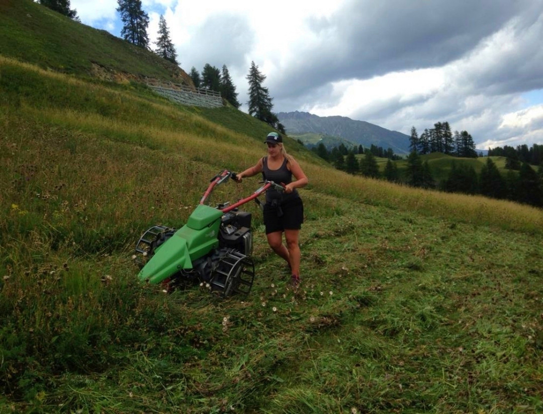 Peder und ich machen das meiste alleine. Ab und zu kommt ein Freund und hilft uns, wo er kann. Bei der Heuernte haben wir immer viele Freunde, die uns helfen, was wir sehr schätzen. Peder hat den Betrieb im Jahr 2012 von seinen Eltern übernommen. Peders Vater ist leider vor drei Jahren gestorben und seine Mutter kommt ab und zu, um uns bei der Heuernte zu helfen.