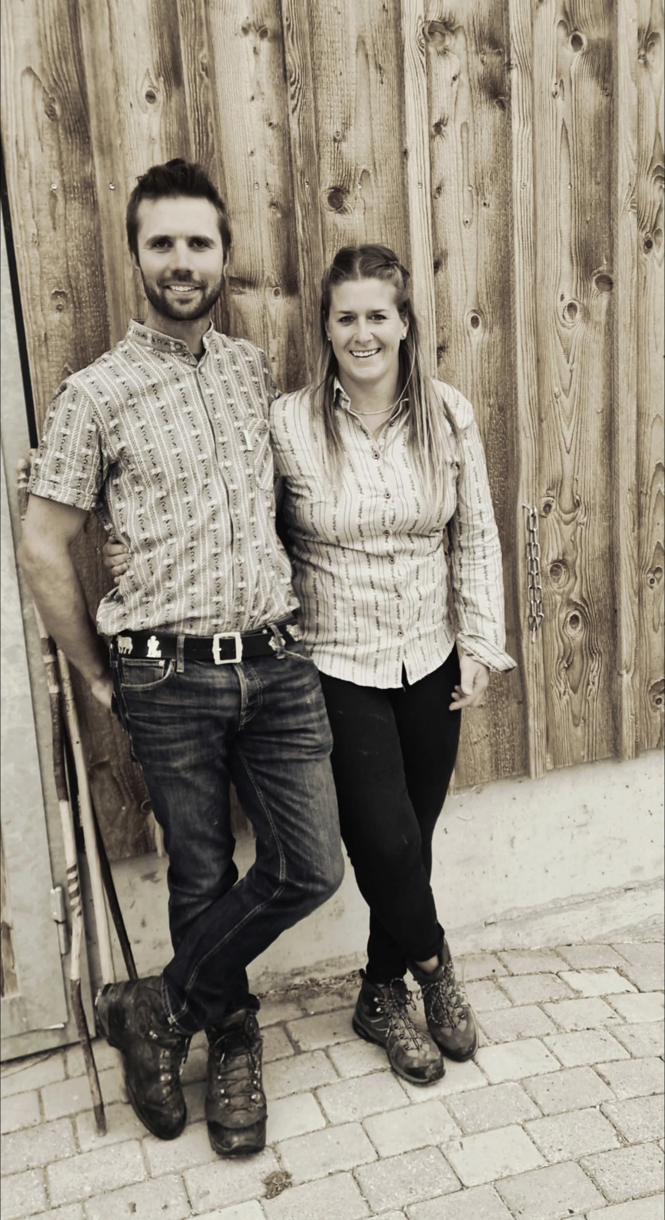Familie: Peder Scherer, gelernter Zimmermann und Landwirt hat im Jahr 2012 den Betrieb übernommen, Marina Kohler, gelernte Floristin