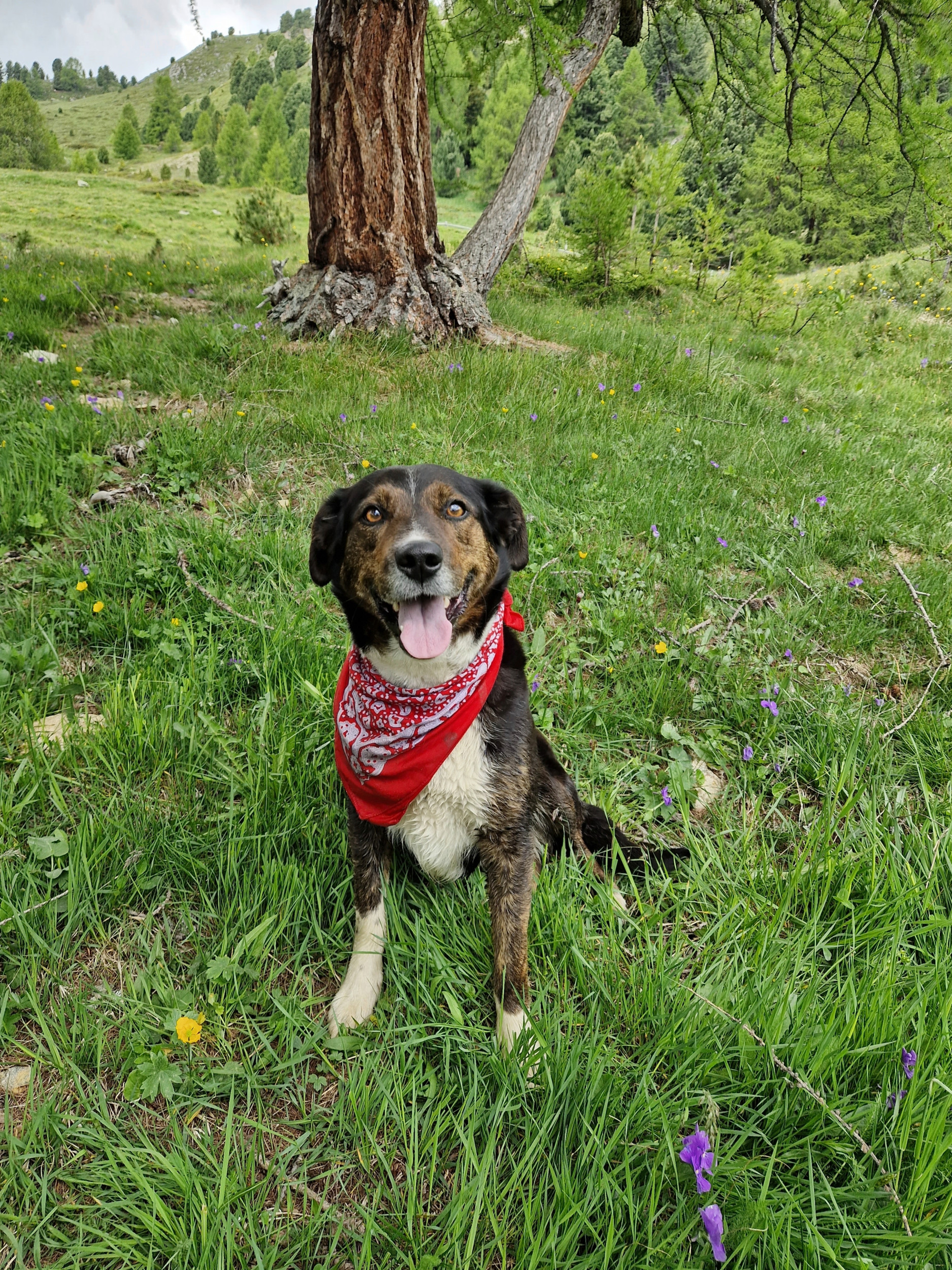 Tiere: 18 Milchkühe (Original Braunvieh und Brownswiss), 12 Aufzuchtrinder und 18 Kälber, Bündner Strahlenziegen, Hühner, Schweine, Hofhund Bea und Katze Caramelo