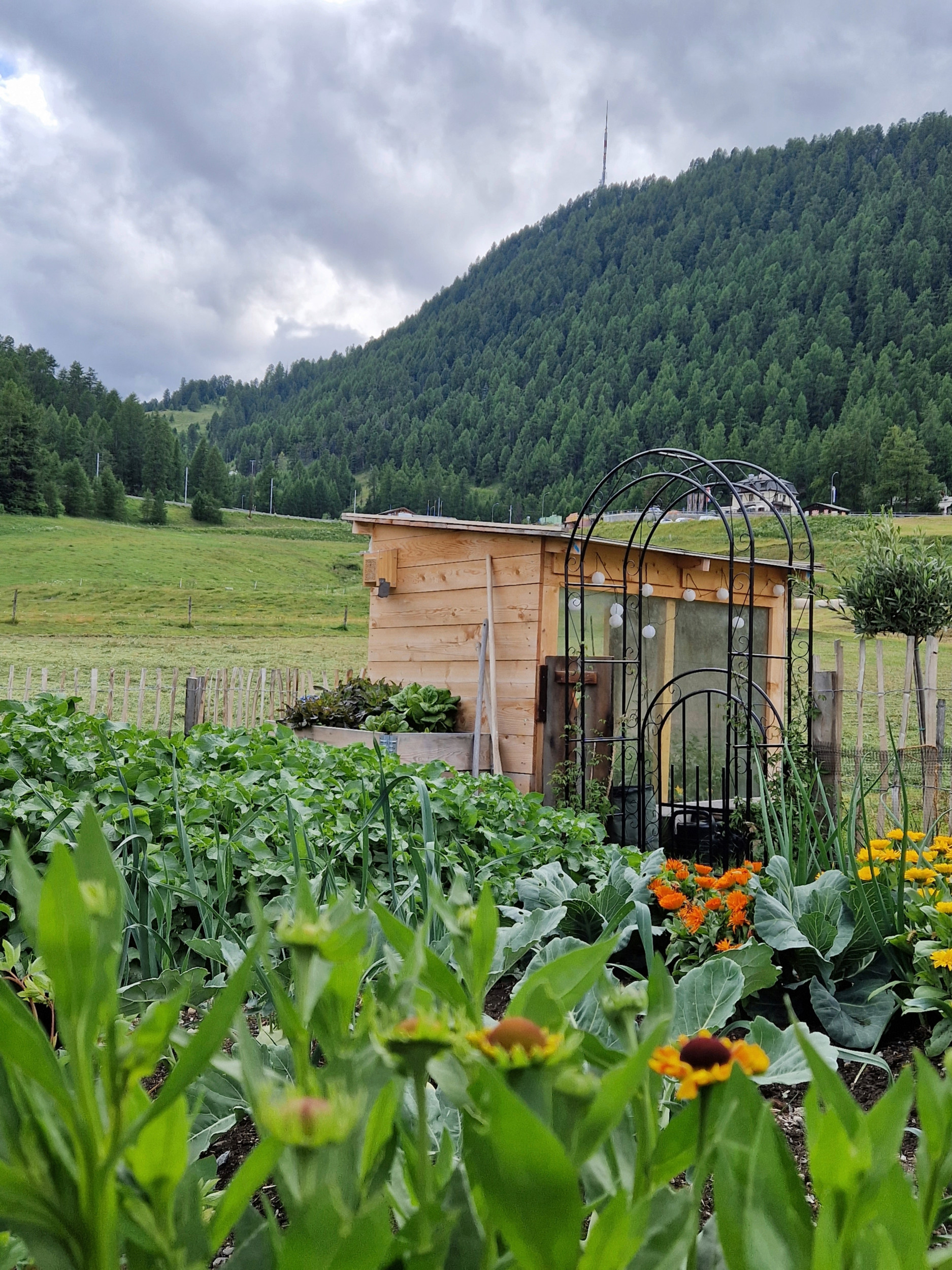 Ich habe den grünen Daumen, was sicher für unseren Gemüsegarten, die Umgebung und das Hoflädli Bain Crasta gut ist. Peder, mein Partner, kann gut mit Holz umgehen, da er gelernter Zimmermann ist. Er hat viel gemeistert während dem Bau vom neuen Stall, sowie dem Hoflädeli und dem neuen Stall für die Hühner.