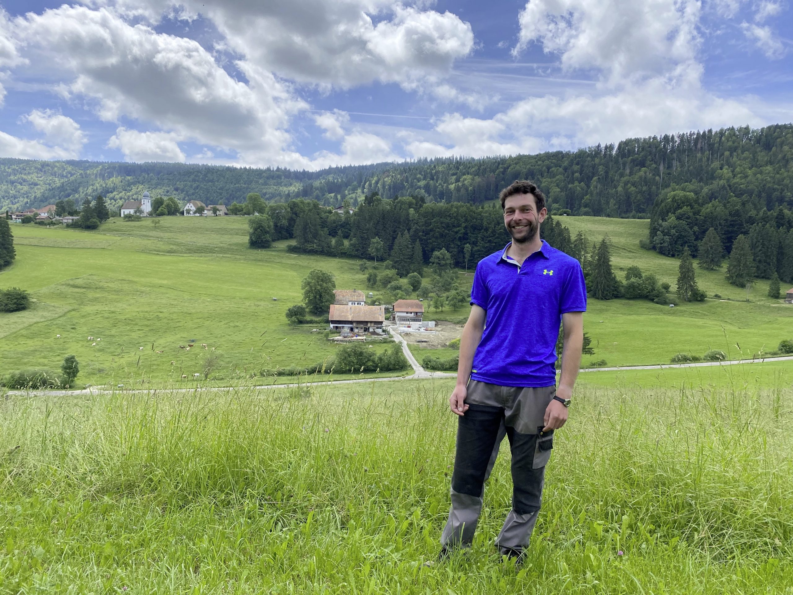 Zu viel verrät er aber nicht. «Es soll eine Überraschung werden. Sicher werde ich aber den Tête de Moine AOP vorstellen und etwas Werbung für ihn machen», sagt er. Seine Milch geht seit vier Jahren in diese Käserei in Fornet-Dessous BE, was ihm einen sehr guten Milchpreis einbringt. Das erzählt er, während er einen Hügel hochschreitet, von dem aus man über die Weide mit seinen Kühen sieht.