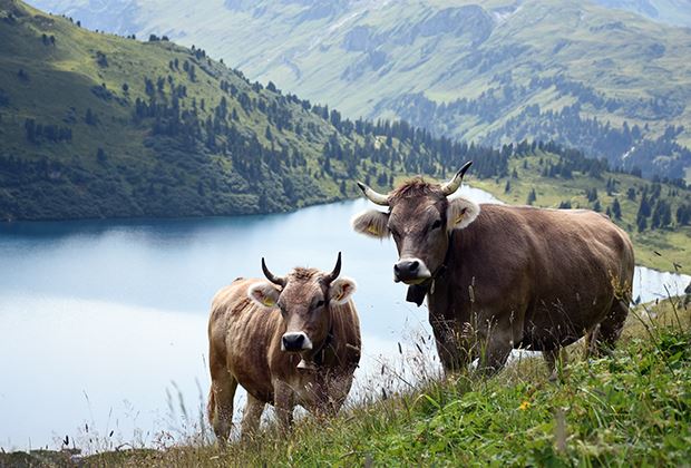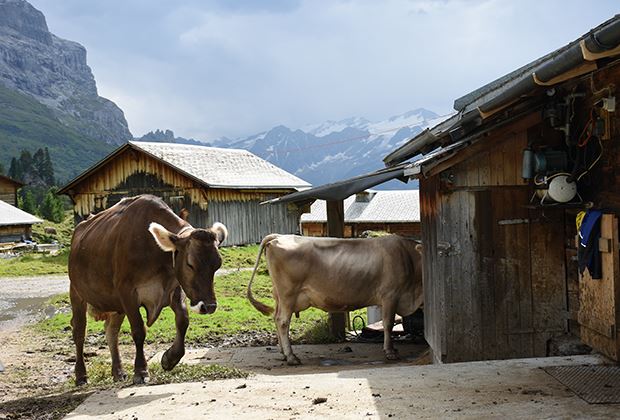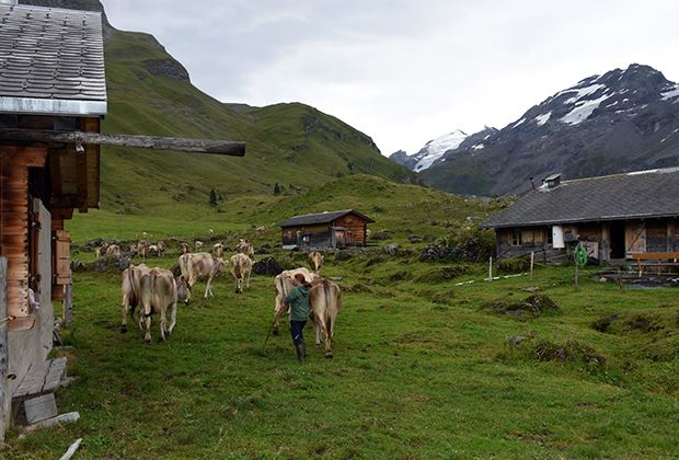 Die Aussicht, welche die Tiere im Sommer auf der Engstlenalp geniessen dürfen, ist einzigartig. Ist der Blick nach unten gerichtet, präsentiert sich der tiefblaue Engstlensee, aufwärts schauend, eröffnet sich die Sicht Richtung Titlis oberhalb Engelberg OW. Nach dem alle Rinder gesichtet wurden, steht bereits wieder das Treiben der Kühe über die grosse Fläche der Alp Weide in den Stall auf dem Programm. Es ist bereits wieder Melkenszeit, die Abendmilch wird danach in die Käserei gebracht. Gegen 19 Uhr dürfen die Kühe wieder raus. Die Sennten sprechen sich dabei ab und lassen die Tiere jeweils gleichzeitig auf die Weide. Danach werden die Ställe erneut gemistet und geputzt. Bevor nach einem langen und strengen Tag der Feierabend winkt.