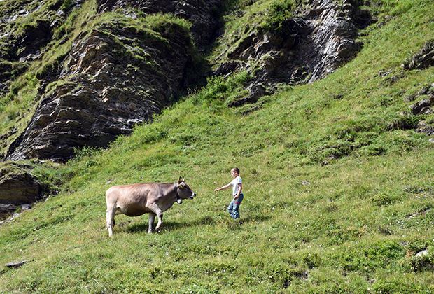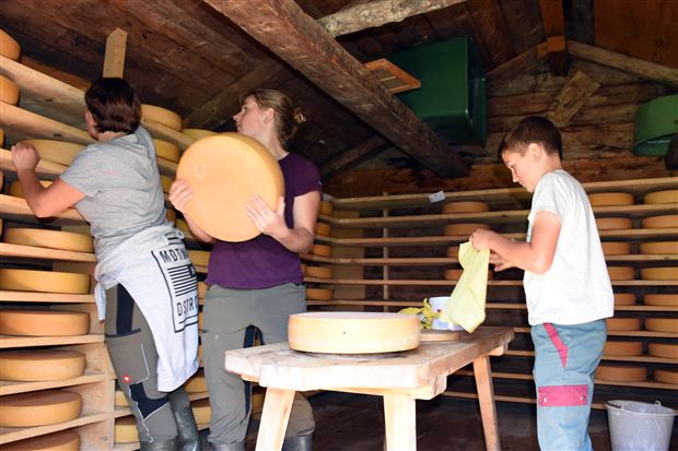 Zum anderen verbringt der 12-jährige «Älpler-Bueb» Yanik strenge Ferien auf Engstlen. Bereits seit anderthalb Wochen steht er den beiden Älplerinnen tatkräftig zur Seite. Auf die Frage, ob ihn denn nicht langsam das Heimweh plage, meint er: «Wenn ich meine Eltern und mein zu Hause vermisse, so greife ich zum Telefonhörer. Weil aber unsere Kühe hier bei Hubers auf der Alp sömmern, kommt das Heimweh etwas weniger auf.»