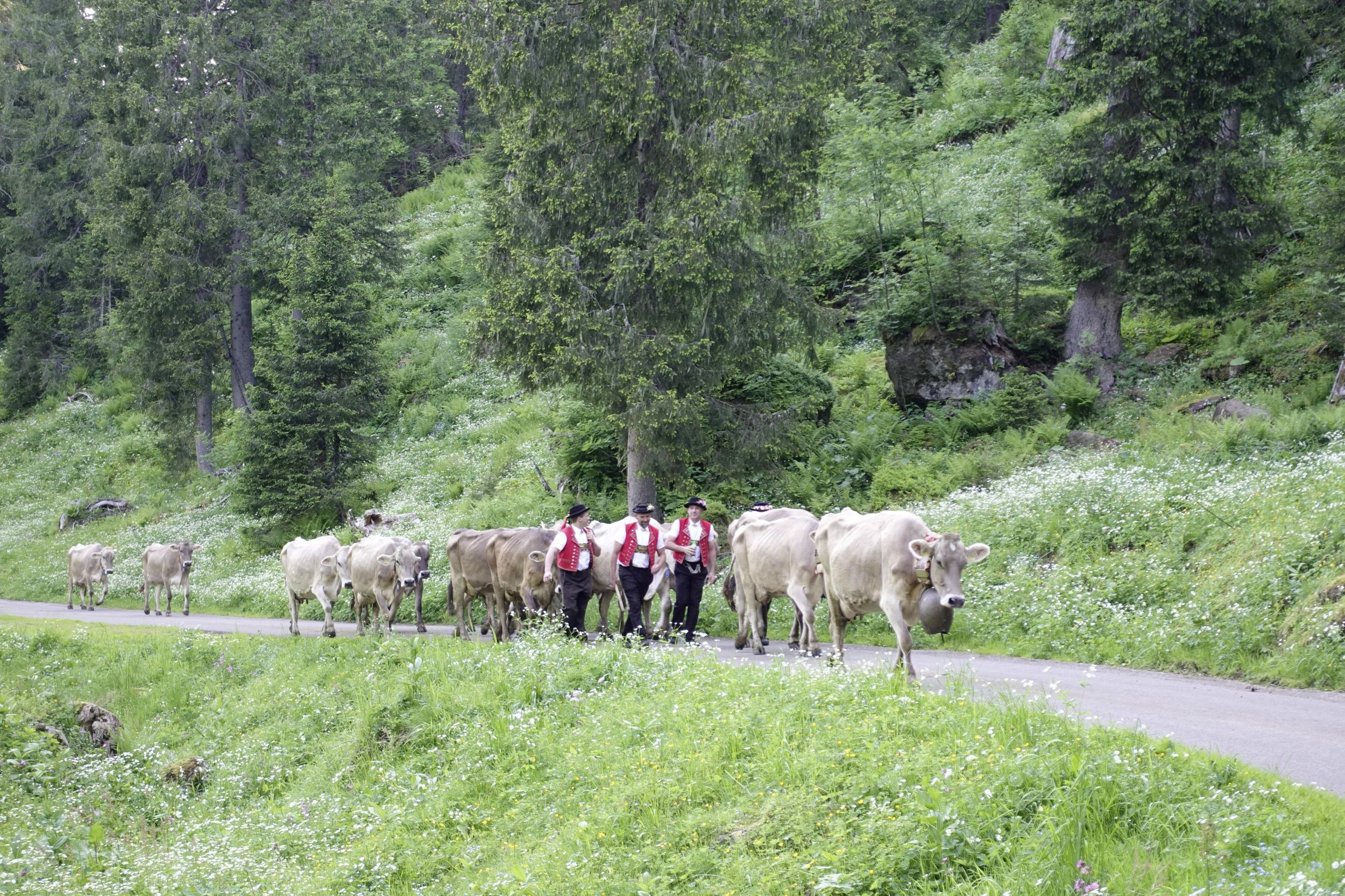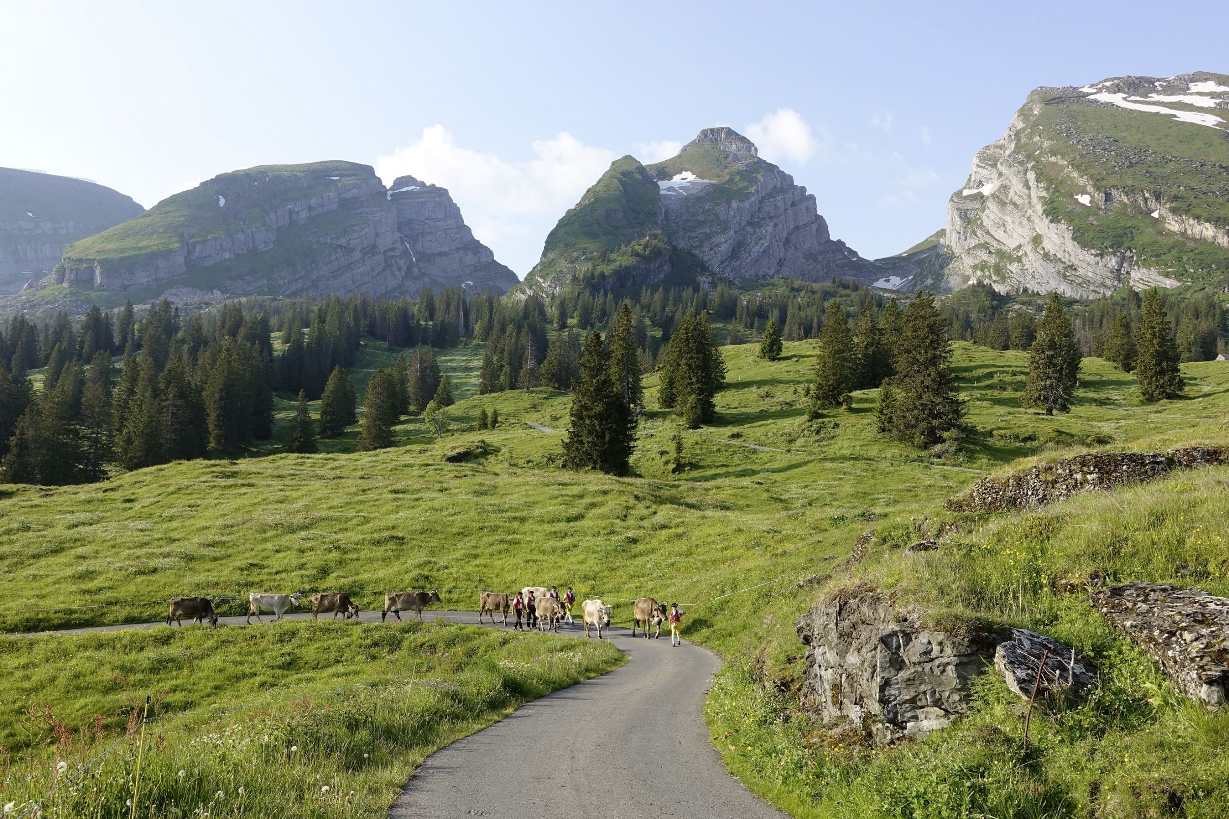 In ihren traditionellen Trachten feiern Bauernfamilien, wie ihre Grossväter auch schon, den Start der Alpzeit am Fusse der Churfirsten. Das «Öberefahre» wird von klangvollen Schellentönen und fröhlichem «Johlen und Juchsen» geprägt.