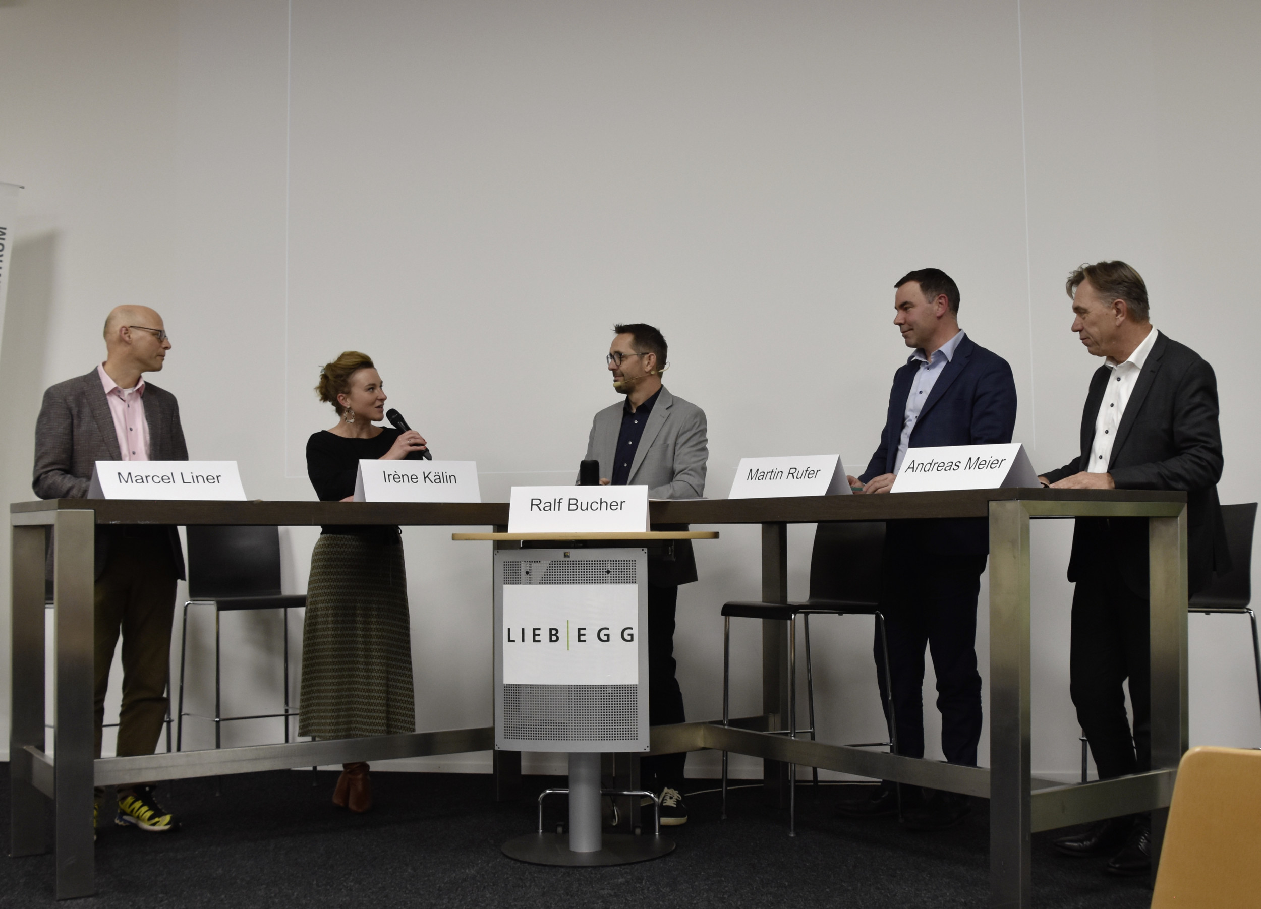 Agrarpolitik Liebegg, Gränichen, Marcel Liner, Irène Kälin, Ralf Bucher (Moderator), Martin Rufer, Andreas Meier (v.l.)