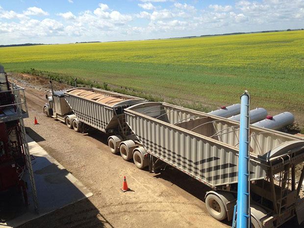 Währenddessen scheint in Kanada einzig der Horizont das Begrenzende zu sein. 1 bis 2 Liter Glyphosate pro Hektare werden dort sieben bis zehn Tage vor der Ernte gespritzt. Das vorhandene Unkraut wird bekämpft, der Weizen wird schneller und gleichmässiger erntereif, und der Mähdrescher kann 2 km/h schneller fahren. Zudem ist dies auf Grossbetrieben unabdingbar, da die riesigen Flächen nur noch in Etappen geerntet werden können.