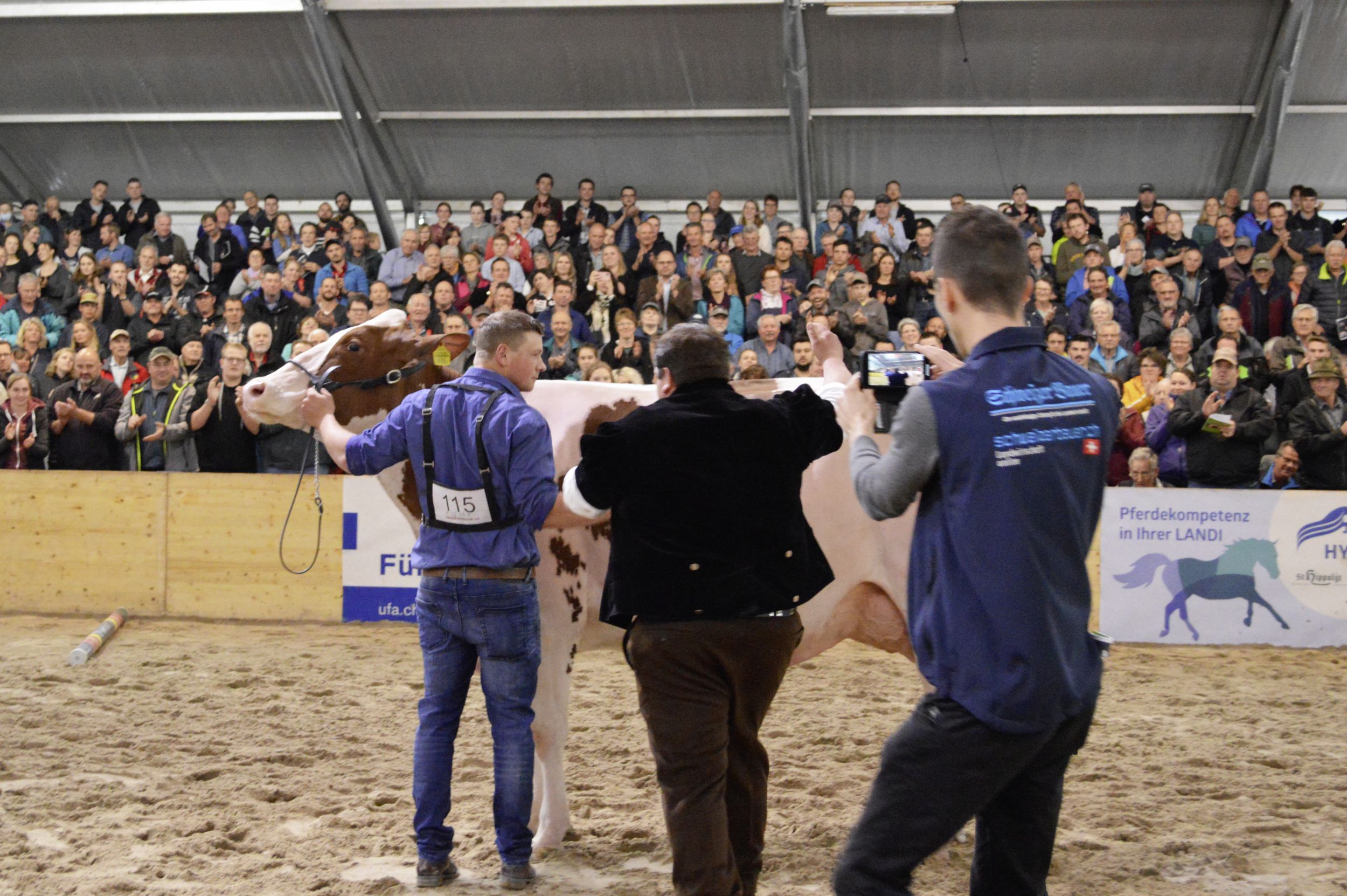 Die Ehrendamen und Schwestern Lisa (l.) und Rebekka Fuss aus Teuffenthal b. Thun. - Esther Schneiter Die erste Kategoriensiegerin des Tages: SomSiNi Brenaco Saskia, Simon und Nicole Sommer, Ufhusen LU. - Esther Schneiter Die Simmentalerkuh Habicht Sennerin von Michael Aebersold aus Diemtigen wartet auf den Auftritt im Ring. - Esther Schneiter Hanspeter Fuss, Jan Jungen und Stefan Schumacher (v.l.). - Esther Schneiter Das grosse Zelt an der BEA Eliteschau. - Esther Schneiter Die Richter Jan Jungen (SF) und Christian Bürki (SI). - Esther Schneiter Die Ränge sind bereits während der ersten Kategorien gefüllt. - Esther Schneiter Gespannte Blicke in den Ring. - Esther Schneiter Florian Hofer mit Secretariat Parma. - Esther Schneiter Die Siegerin der Kat. 5. SI: Cremo Aurelia, Familie Schmied, Guggisberg. - Esther Schneiter Die schön hergemachte Siegerin der Kat. 5 Cremo Aurelia, Familie Schmied, Guggisberg, - Esther Schneiter Cremo Aurelia, Familie Schmied, Guggisberg. - Esther Schneiter Die schönen Haarbouquets der Ehrendamen. - Esther Schneiter Bernhard Kunz macht die Rangliste. - Esther Schneiter Übersetzer Fritz Tschanz. - Esther Schneiter Hanspeter Fuss schreibt die Ränge auf. - Esther Schneiter Fleissige Helfer im Hintergrund. - Esther Schneiter Hanspeter Fuss mit seinen Töchtern Rebekka (l.) und Lisa, die Ehrendamen an der BEA Eliteschau. - Esther Schneiter Die Siegerin der Kat. 8. SI: Eiger Conny, Niklaus Kropf, Oberwil i.S. - Esther Schneiter Das Line-up der Simmentaler-Kategorie 8. - Esther Schneiter Konzentration im Ring. - Esther Schneiter Der letzte Schliff, bevor es in den Ring geht. - Esther Schneiter Richter RH/HO Simon Urfer aus Gerzensee. - Esther Schneiter Ein guter Rang 2 für Roman Linde, Hansueli Aebersold, Beatenberg. - Esther Schneiter Ab in den Ring. - Esther Schneiter Von Känel’s Kilian Sf Gina von Adrian von Känel, Aeschiried, gewinnt die Kategorie 12. - Esther Schneiter Eine glückliche Vorführerin. - Esther Schneiter Eine Augenweide. - Esther Schneiter Auch die Kindern verfolgen die Kühe im Ring. - Esther Schneiter Die Experten Simon Urfer, Jan Jungen und Christian Bürki (v.l.) - Esther Schneiter Die Ringassistenten Reto Küng (l.) und André Rüegsegger.. - Esther Schneiter Jan Jungen bestimmt Cremo Aurelia von Familie Schmied aus Guggisberg zur Miss Schöneuter. - Esther Schneiter Die drei Rassensiegerinnen vor der Wahl zur Miss BEA. - Esther Schneiter Miss BEA 2022: All-Star Agent Elegance, Gobeli Holstein und Ruedi Gasser und Hansjörg Räz, Saanen. - Esther Schneiter schweizerbauer.ch ist bei grossen Entscheidungen ganz nah dran. - Esther Schneiter Grosse Freude, als von Känel’s Kilian Sf Gina von Adrian von Känel aus Aeschiried zur Rassensiegerin gewählt wird. - Esther Schneiter Eiger Conny von Niklaus Kropf aus Oberwil i.S. wird Rassensiegerin Simmental. - Esther Schneiter Das Richtertrio (vorne) und die beiden Ringassistenten. - Esther Schneiter