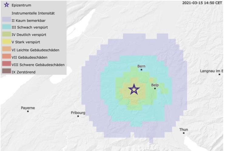 Ähnlich stark und spürbar wie am Montag in Bern bebte es letztmals am 1. März in Steckborn TG mit einem Wert von 3 auf der Skala.