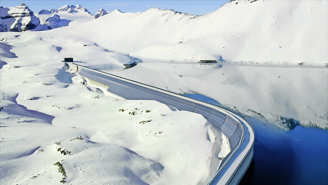 Im Glarnerland entsteht auf der Muttsee-Staumauer auf 2500 Metern über Meer die grösste alpine Solaranlage der Schweiz. Gebaut wird das 10’000 Quadratmeter grosse Kraftwerk diesen Sommer von den Energieunternehmen Axpo und IWB.