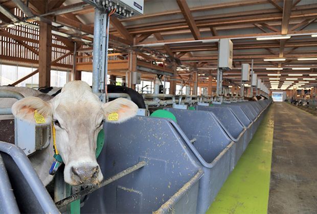 Josias Meili, Berater für Milchproduzenten und Lehrbeauftragter am Strickhof, erklärt dass die Technologie die Milchviehställe besonders in Form des Melkroboters erreicht hat. Trotzdem, Landwirte mit Melkrobotern stellen noch immer bloss einen Bruchteil dar. Im zweijährigen Stall am Strickhof werden zahlreiche Versuche durchgeführt. Dafür sind Stall und Kühe mit Sensoren ausgestattet. Dank ihnen kann die Aktivität der Tiere verfolgt werden, wie viel Milch eine Kuh gibt, wie viel sie frisst, wie sich ihr Gewicht über kürzere und längere Zeit verändert.