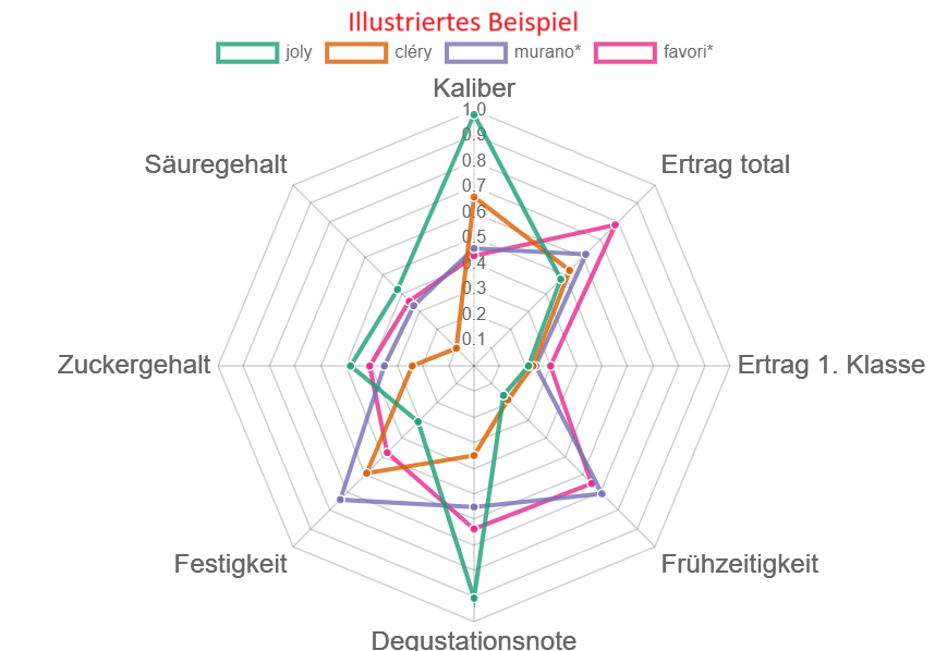 Das Tabellensheet «Sorten-Vergleich» ermöglicht es, die verschiedenen Sorten von Interesse schnell und effizient miteinander zu vergleichen.