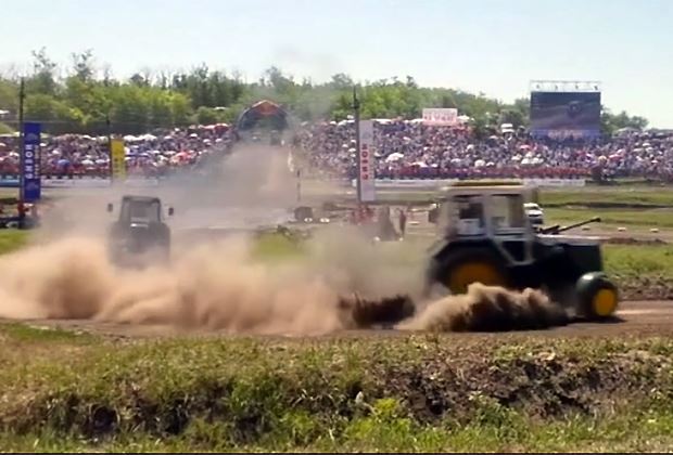 In Rostow am Don lieferten sich am vergangenen Sonntag 33 Traktorfahrer ein spektakuläres Rennen. Auf der herausfordernden Piste kam es zu heissen Duellen.