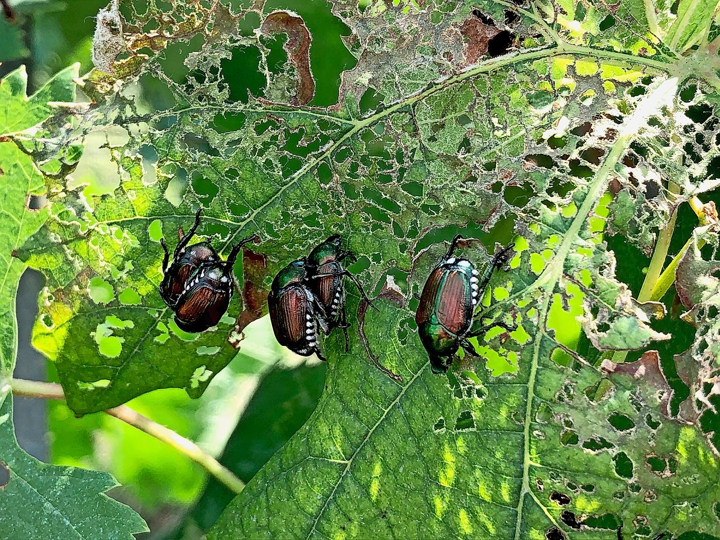Die adulten Käfer hinterlassen an den Blättern den typischen Skelettfrass. Nebst den Blättern kann der Japankäfer auch die Früchte oder Blüten der Pflanzen befallen. Das Schadenspotenzial in der Schweiz wird auf mehrere hundert Millionen Franken pro Jahr geschätzt. «Er ist eine grosse Gefahr für die Landwirtschaft, den produzierenden Gartenbau und die Umwelt», warnt das Bundesamt für Landwirtschaft (BLW).