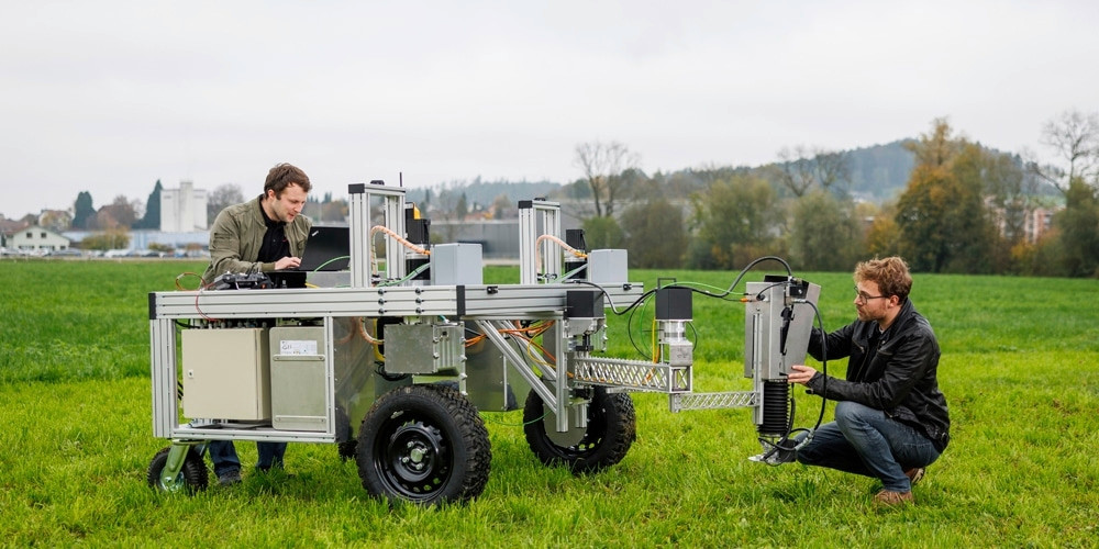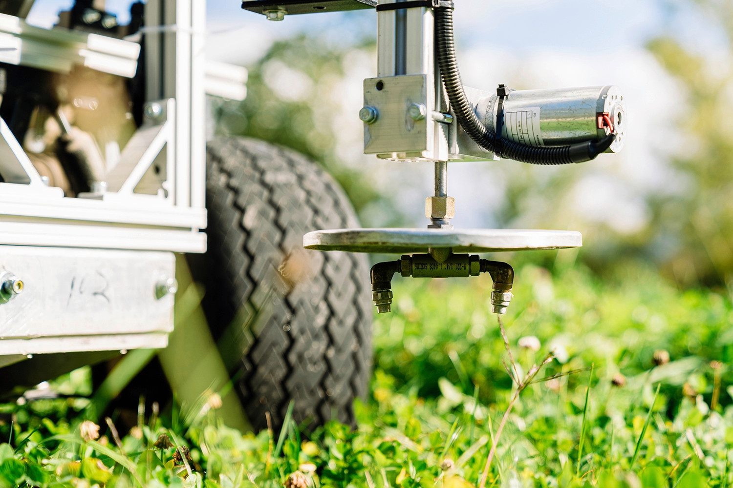 Pflanzenschutzroboter, der Unkraut gezielt mit heissem Wasser bekämpft und dabei auf den Einsatz von chemischen Pestiziden verzichtet. Entwickelt haben ihn Forschende der Ostschweizer Fachhochschule.