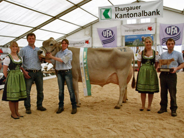 Kenner der Szene waren sich einig, dass im Thurgau wohl noch nie so viele Top Braunviehkühe an einer Schau aufgeführt wurden. Ins gleiche Horn stiess auch der junge, deutsche Richter Markus Ostenried, der seine Aufgabe mit Bravour erledigte. Für ihn spielte das perfekte Styling bei der Rangierung keine Rolle, wichtig war ihm bei seinen Entscheiden die harmonische, feine, tiefrippige Kuh mit gut aufgehängtem Euter und nicht zu viel Muskelmasse. Aus seiner Sicht war die Abteilung 4, Erstmelk ältere, der absolute Hammer, die acht aufgeführten Kühe wären auch international nur schwer zu topen gewesen.
