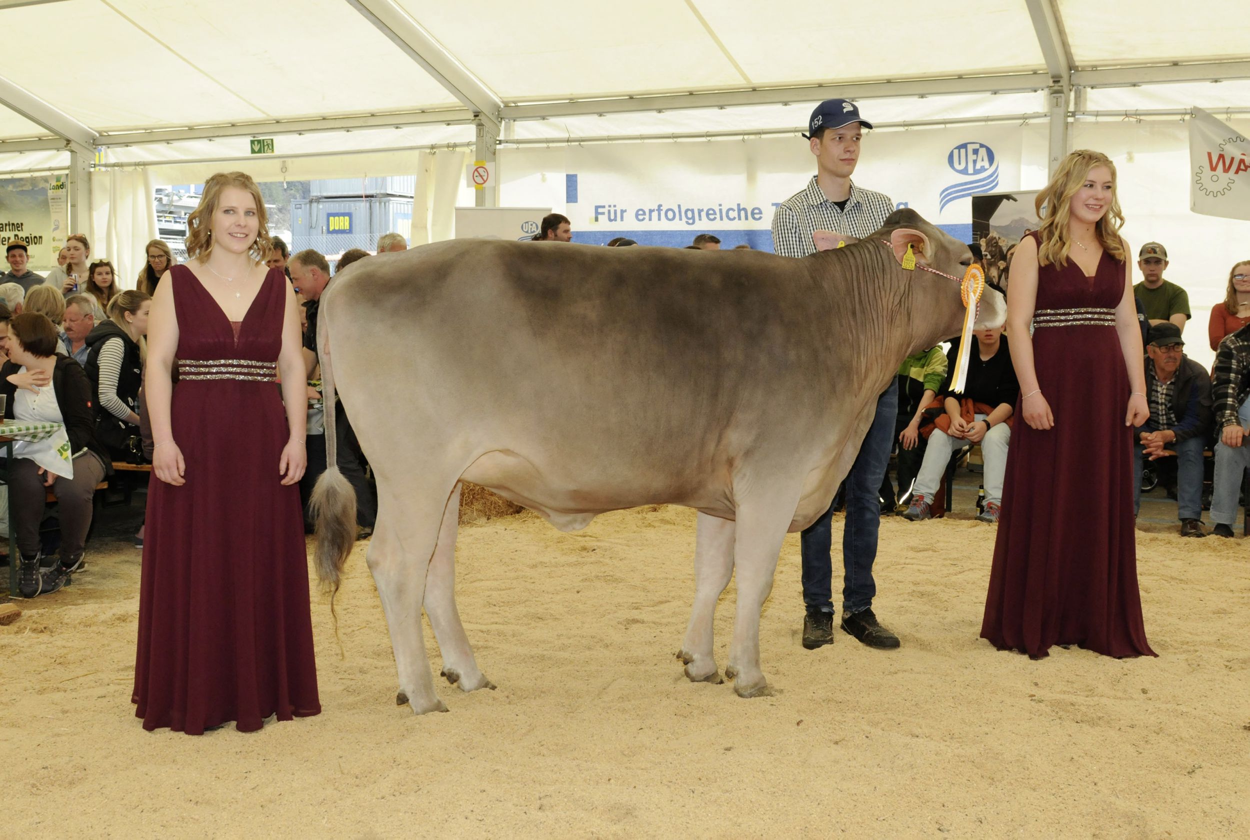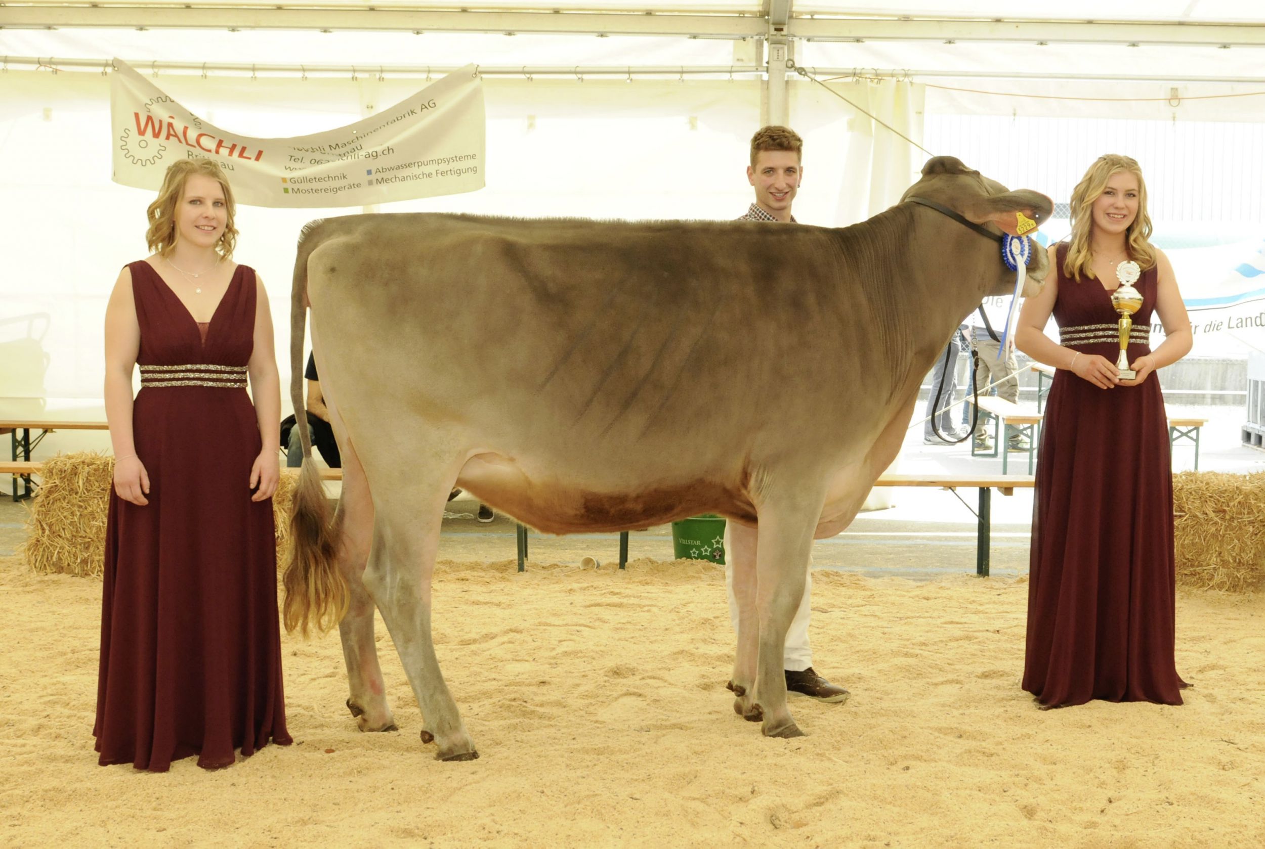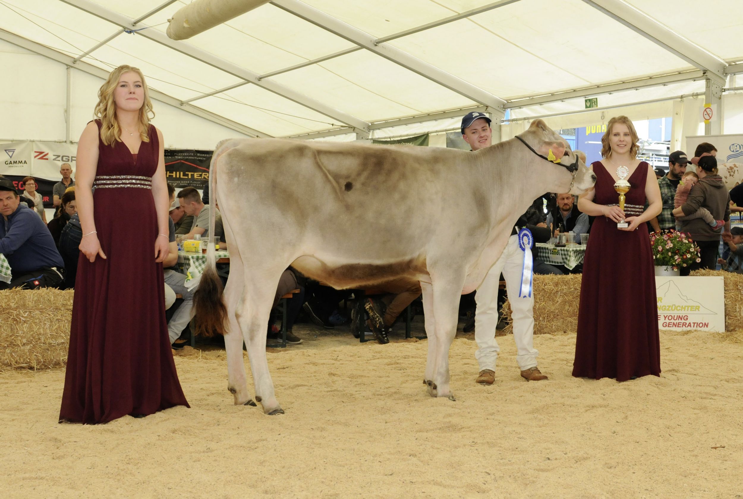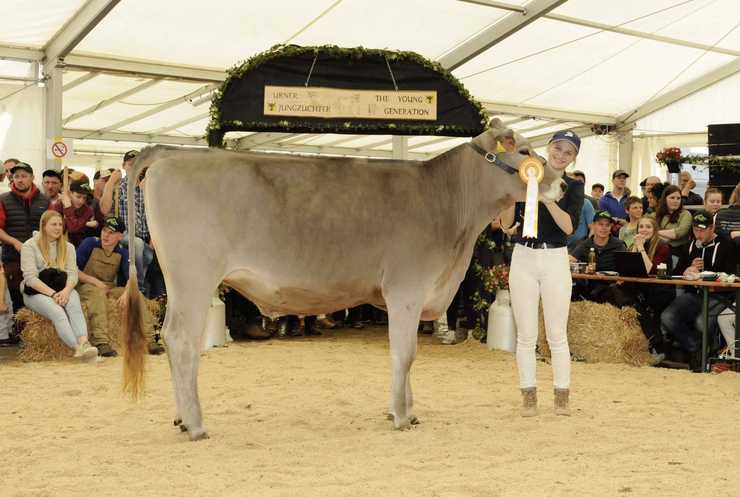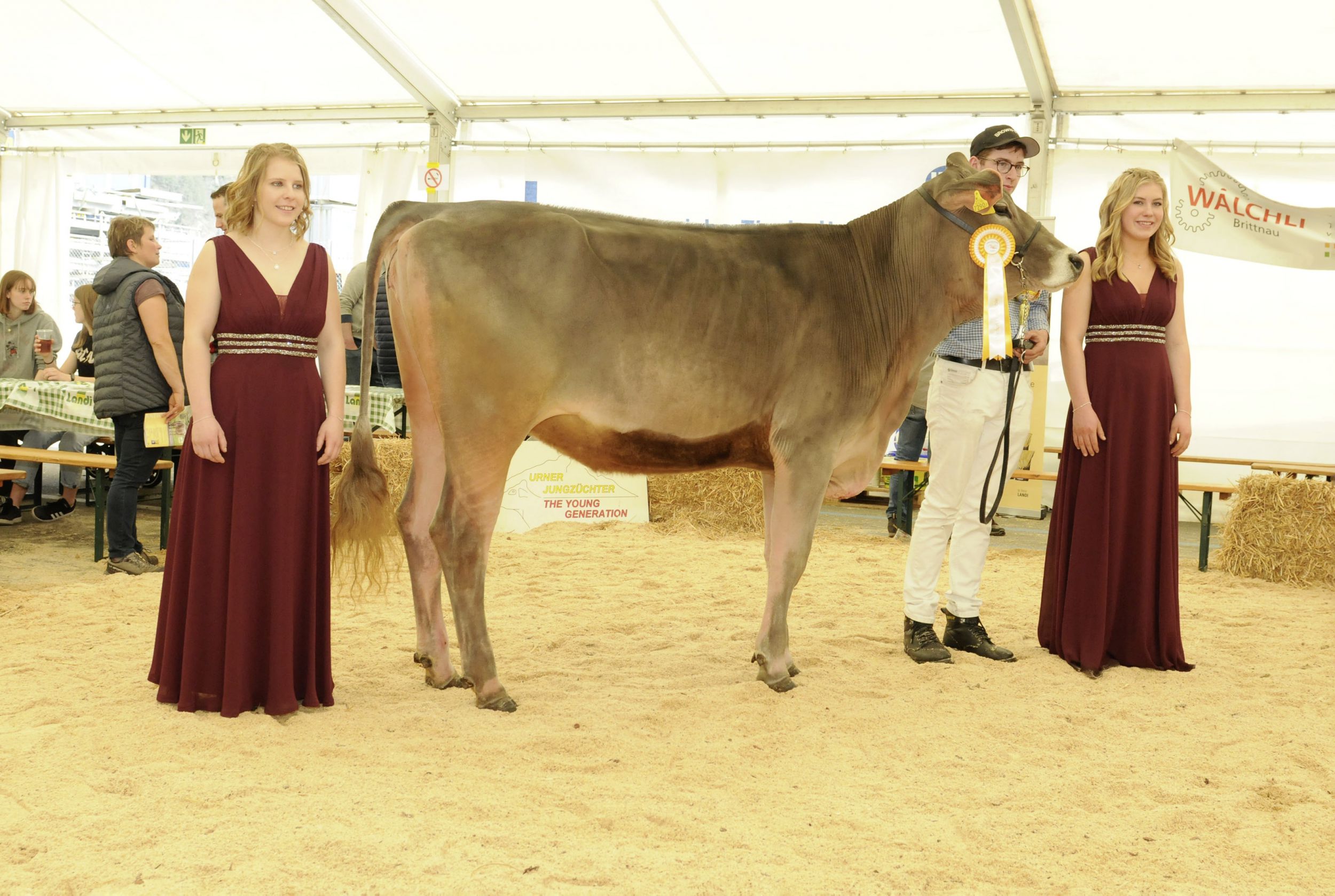 Dass die Urner Jungzüchter auch bei der Rasse Brown Swiss zur nationalen Spitze zählen, ist seit vielen Jahren bekannt. Im März haben die Urner nun mit dem ersten Sieg am Junior Contest einen weiteren Höhepunkt im Verein gefeiert. Champion am Junior Contest wurde wallimannBV Tu Sg Troya von Simon Arnold und im Besitz von G-Wal Mountain Cows aus Bürglen. Zusammen mit der Saison-Seriensiegerin Zrotz Brice Vera von Three-Salzgeber aus Pany ist Troya als Favoritin zur Jubiläumsschau angetreten. Da die beiden Ausnahmerinder in der gleichen Abteilung aufeinander trafen, kam es schon früh zur Vorentscheidung um den Championtitel. Schliesslich gewann Troya die Abteilung vor Vera. Im Final um den Gesamtsieg konnte wie erwartet kein anderes Rind den beiden Favoritinnen das Wasser reichen. Hinter Troya und Vera gewann Papa Schlumpf Pascal von Jungzüchter Andri Bosshard und im Besitz von Thomas Roffler-Flütsch, Grüsch GR, die Ehrenerwähnung.