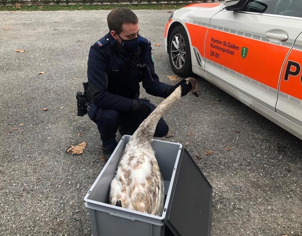 Am Samstag um 11 Uhr meldete ein Passant der Kantonalen Notrufzentrale, dass er am Ufer des Bodensees einen verletzten Jungschwan aus dem Wasser gezogen habe, teilte die Kantonspolizei St. Gallen am Sonntag mit.