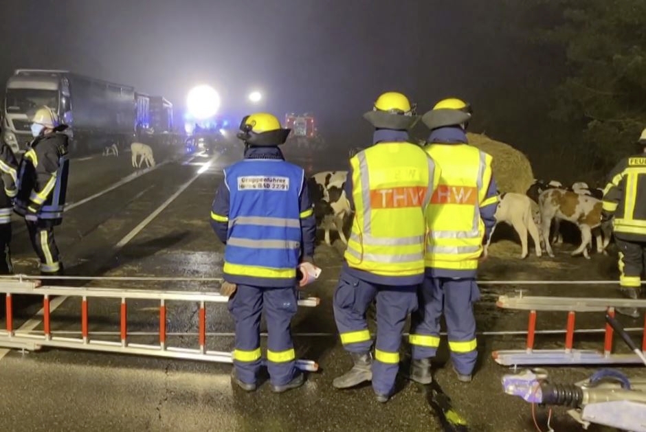 In der Nähe von Baden-Baden ist am Mittwochabend ein Viehtransporter Feuer gefangen. Dem Chauffeur gelang, die Kälber in Sicherheit zu bringen.