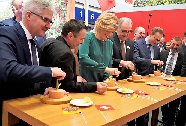 Auf dem Messegelände der Internationalen Grünen Woche in Berlin präsentiert sich die Schweiz unter dem Motto "Grüezi Berlin" und setzt die Vielfalt des Schweizer Käse in Szene. Für Bundesrat Guy Parmelin ist Deutschland ein wichtiger Markt, deshalb unterstützt er die Branche beim Marktauftritt.