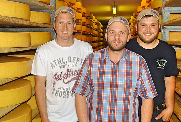 „Wir sind stolz, dass wir die 2,4 Millionen Franken für die neue Käserei nebst Investitionskredit und Hypothek selber finanzieren konnten,“ erzählt Präsident Christian Marro. Dass sei aber nur möglich gewesen, weil die erfahrenen Vorgänger in Tentlingen schon solid und zukunftsorientiert gearbeitet haben, erklärt der jungen Bauer. Es vergeht kaum eine Sekunde, ohne dass er und sein junger Käser herzlich gegrüsst werden. Ja sogar mit einer Prise Respekt. Kein Wunder, denn mit Käser Lauper sind neue Produktionen in Tentlingen entstanden; etwa Raclette-Käse aus der Region, Freiburger Rahmkäse oder ein mit einem Förster zusammen kreierten Harzerkäse mit Tannenholz ummantelt. „Natürlich sind es immer noch etwa 80 Prozent Gruyère in unserer Produktion,“ präzisiert Marro, aber mit 2,25 Millionen Liter Milch kann Tentlingen eben noch mehr Gutes aus der Region produzieren und die tragenden Namen Gruyère und Vacherin zusätzlich bereichern.