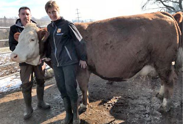Fünf Simmental-Kühe haben Ueli Rubin und Monika Wittwer. Eine davon ist die neu gewählte Mutterkuh des Jahres 2017.