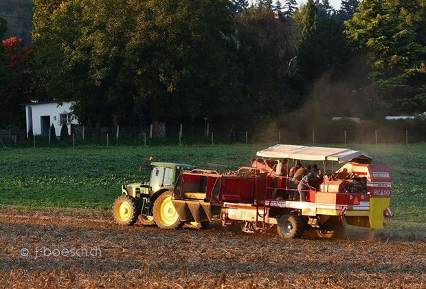 Weil «Härdöpfele» unserer Meinung nach nicht nur Technik benötigt, sondern in erster Linie Familiensache ist, hat die Aufnahme von Bruno Zürcher aus Wattenwil bei Worb BE gewonnen. Junge und etwas Ältere helfen sich bei der Ernte. Sie sitzen auf dem Samro Junior, der den Siebkorb noch durch den Boden zieht und bei dem man die Kartoffeln und nicht die Erde und Steine rauslesen muss. Die ältere Generation erinnert sich bestimmt noch gerne daran, dass dies der letzte Samro war, auf dem man beim Auslesen sitzen konnte. Herzliche Gratulation an Familie Zürcher!