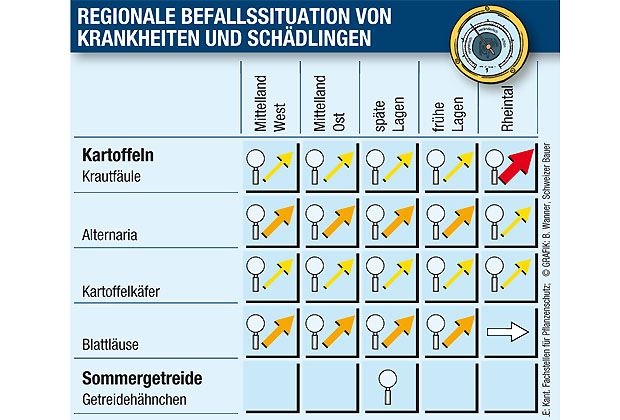 Das Krautfäule-Infektionsrisiko in den Kartoffeln bleibt hoch. Auch Alternaria, Käfer und Blattläuse setzen den witterungsbedingt bereits geschwächten Stauden zu. Sie müssen dieses Jahr rundum geschützt werden.