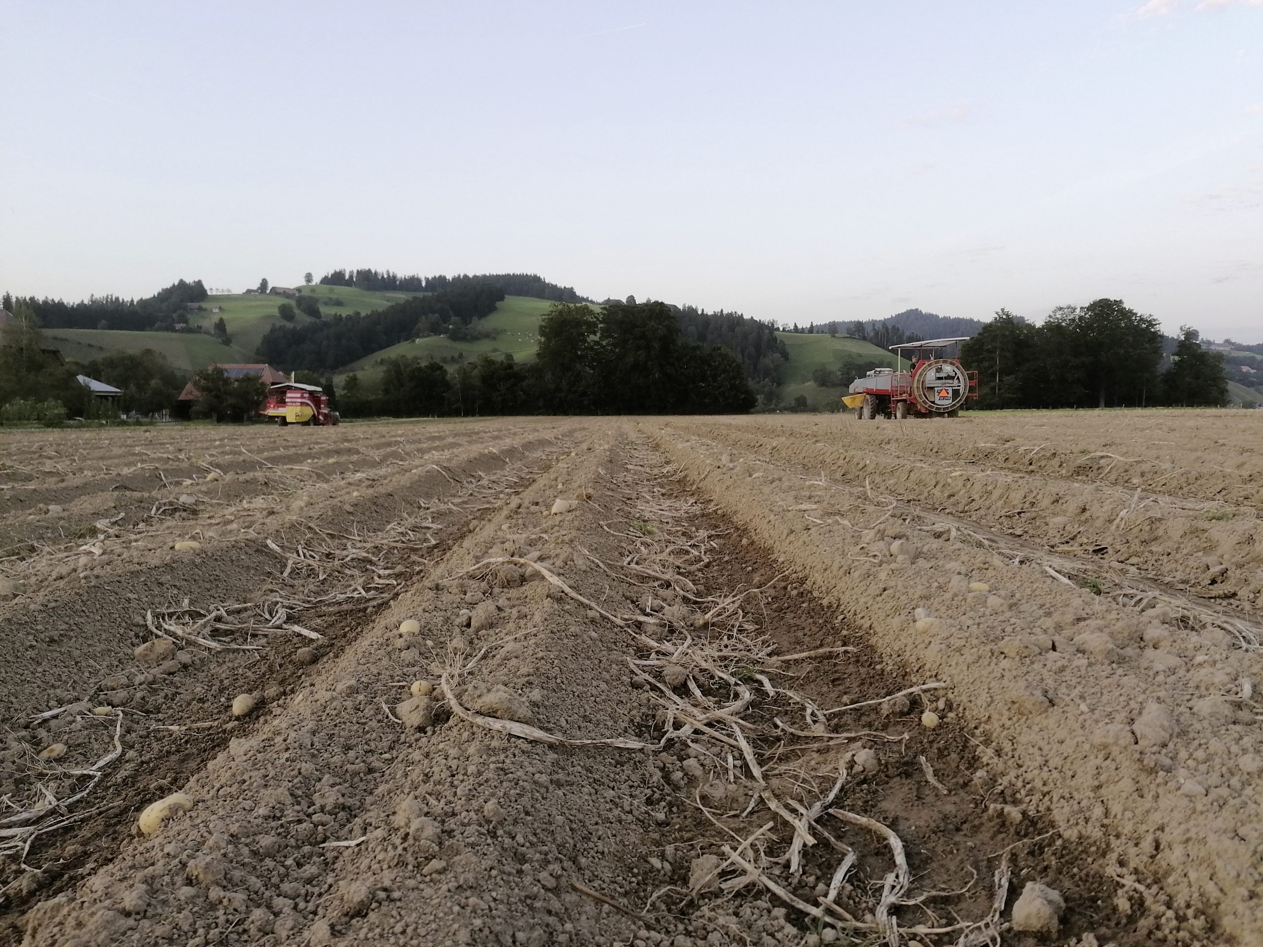 Dieses Jahr bauten rund 4000 Produzenten auf 10 700 Hektaren Kartoffeln an. Das Kartoffeljahr 2021 ist für die Kartoffelproduzenten äusserst anspruchsvoll. Während der Sommermonate waren etliche Extremwetterereignisse (Hagel, Starkniederschläge) zu verzeichnen, die viele Kartoffelfelder in Mitleidenschaft gezogen haben. Hinzugekommen seien ideale Bedingungen für die Kraut- und Knollenfäule, schreibt Swisspatat auf der Homepage.