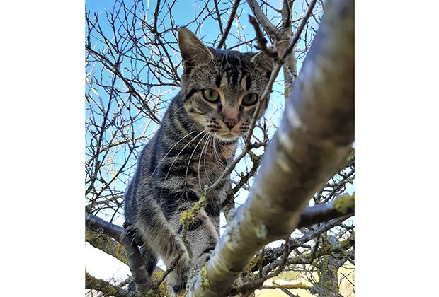 Um den besten Überblick zu bekommen, klettert so manches Büsi hoch auf die Bäume. So macht es auch das kleine Kätzchen auf unserem Siegerbild. «Hinauf geht immer, doch wie komme ich wieder auf den sicheren Boden zurück?» Es scheint, als würde sich das Tigerli genau dies Frage stellen.