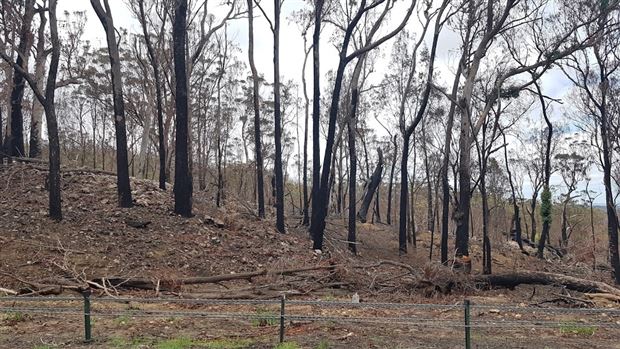 Um an die Küste zu gelangen, war die Durchfahrt von Brandgebieten nötig. Hier hat es im November gebrannt und seither ist Regen gefallen. Es herrscht gespenstische Stille, kein Vogelzwitschern, keine Kängurus, nicht einmal die lästigen Fliegen sind da.
