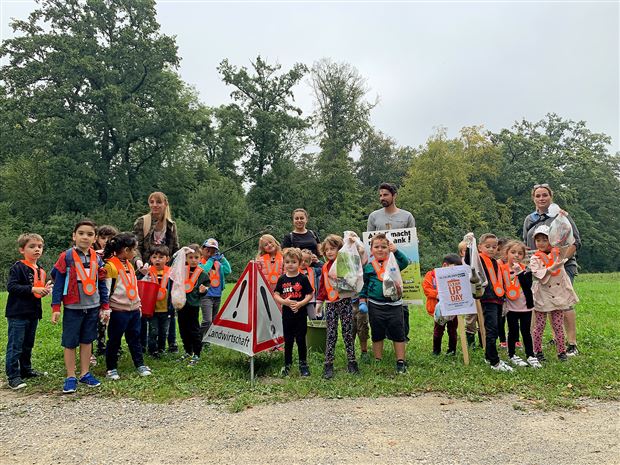 Im Rahmen des Clean-Up-Days engagierte sich der Zürcher Bauernverband (ZBV) mit einem Landwirt und einer Kindergartenklasse für saubere Wiesen und Weiden.