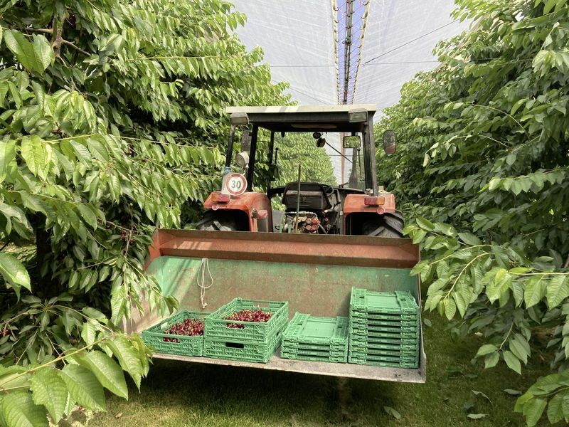 Heute wachsen die Kirschbäume für Tafelkirschen in hochmodernen Produktionsanlagen – trotzdem erfordert der Anbau grosses Engagement. Die Anlagen werden unter anderem mit einer Wetterschutzvorrichtung versehen: Die Abdeckung soll die Kulturen vor Hagel und Regen schützen, damit die Kirschen nicht platzen und die Qualität einwandfrei bleibt. Daneben müssen die Kulturen insbesondere im Frühling und Frühsommer vor Frostgeschützt werden. Insbesondere auch deshalb, weil sich der Blühzeitpunkt in unserem ändernden Klima durchschnittlich um drei Wochen nach vorne verschoben hat und die Wetterextreme in den letzten Jahren massiv zugenommen haben. So waren die Ernteausfälle 2017 und 2021 aufgrund von Spätfrost erheblich. Späte Schneefälle oder eben auch heftige Hagelwetter können Gerüste und Folien zerstören und müssen sofort wieder ersetzt werden, um den Schutz zu garantieren. Damit die Bäume unter der Abdeckung trotzdem das notwendige Wasser erhalten, sind die Anlagen oft mit einer Tröpfchenbewässerung ausgestattet, die das Wasser gezielt verabreichen können.