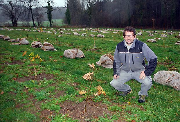 So besuchte der junge Landwirt zuerst einen Kurs bei der Firma "Trüffel Garten" in Büren an der Aare. Er liess seinen Boden analysieren, brachte zehn Tonnen Kalk aus und erreichte damit den idealen pH-Wert von 7,5. Später wurden 700 junge Bäumchen gepflanzt, bei welchen die Wurzeln mit Sporen des Burgundertrüffels und bei ungefähr 100 Bäumchen mit denjenigen des Wintertrüffels geimpft wurden. Bei den geimpften Bäumchen handelt es sich um Eichen-, Buchen-, Hasel- und Schwarzkiefer.