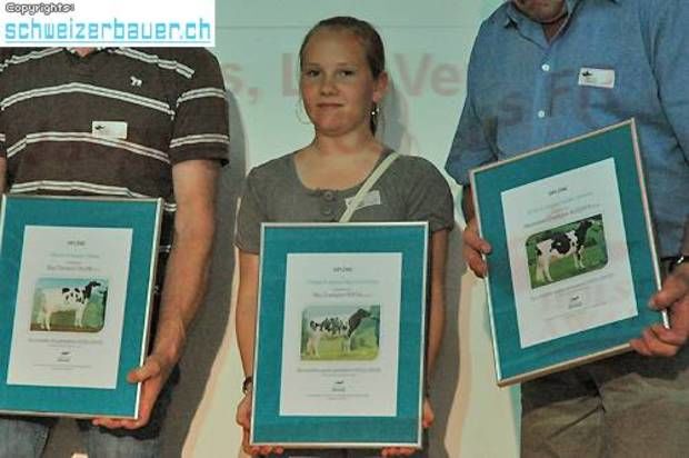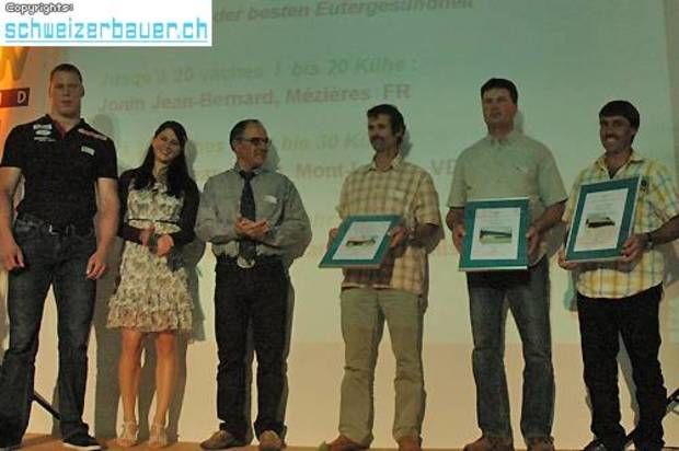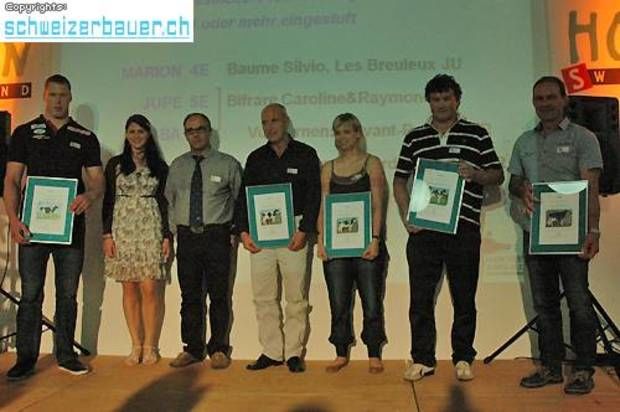 Nebst Jonin und Teuscher wurden auch Walter und Hansueli Winkelmann (Herde über 20-30 Tiere; ganz rechts) für die beste Eutergesundheit ausgezeichnet.