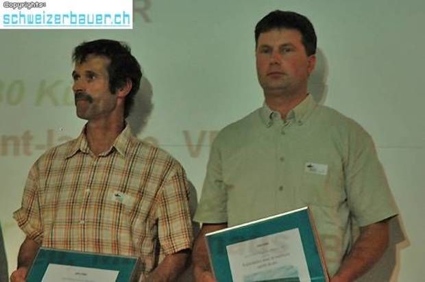 Jean Bernard Jonin (Herde bis 20 Kühe; l.) und Jean-David Teuscher (Herde über 30 Kühe) wurden als Zuchtherde mit der besten Eutergesundheit ausgezeichnet.