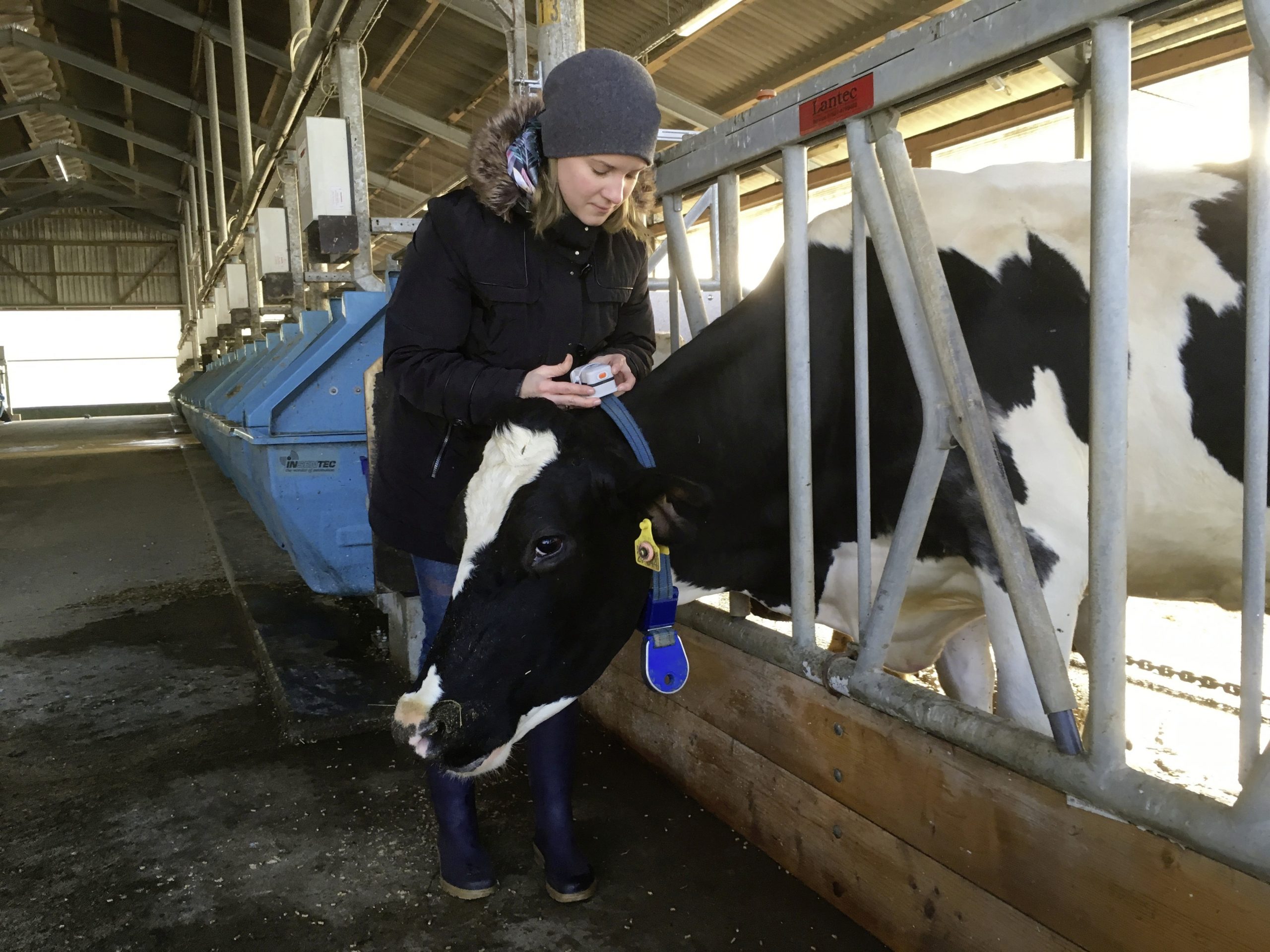 Mit Hilfe eines Echtzeit-Ortungssystems, auch RTLS genannt, können sie die Aktivitäten ihrer Tiere im Stall nachvollziehen. Dafür werden in den Ställen entsprechende Sensoren installiert, welche mit Tags kommunizieren, die an Halsbändern der Kühe befestigt sind. Diese Tags liefern im Sekundentakt Daten darüber, wo sich das Tier im Stall aufhält und können dazu genutzt werden, herauszufinden, wann und wie lange es an einem Ort verweilt.